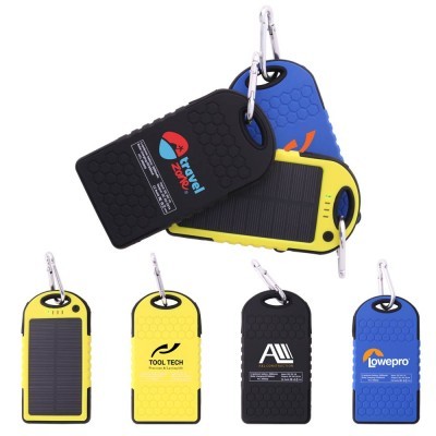 No matter where your clients go, they will have the power they need to perform with the Custom Imprinted Solar Power Bank. Designed to provide power on the go, this item is perfect for outdoor activities. Available in yellow, blue or black, it will look perfect with your logo centered on the back. This item also includes a clip for easy storage and carrying and can be used to power various mobile devices.